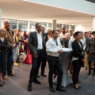 The Württemberg Wine Festival, the last days of the Bundes Garden Show as well as numerous cultural events in concert halls, theatres and museums were a strong competition for the opening of the "MFK International Fantastic Show of Art" at the Baden-Württemberg Duale Hochschule (DHBW). Nevertheless, visitors flocked to the campus on Thursday evening for the vernissage. The Management für Kunst Ester&Pfeifer (MfK) and the DHBW had announced a "superlative art show" in the media; visitors were kindly asked to book in advance. "We hadn't expected such a high number of registrations considering so many simultaneous events," said a somewhat nervous Helmut Ester shortly before the vernissage. "But who knows if they will all come."